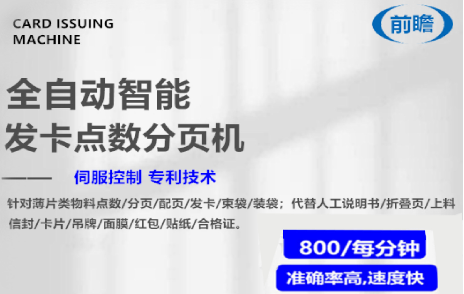 全自动流水线袋装产品说明书点数机创可贴报纸发卡机合格证配页机