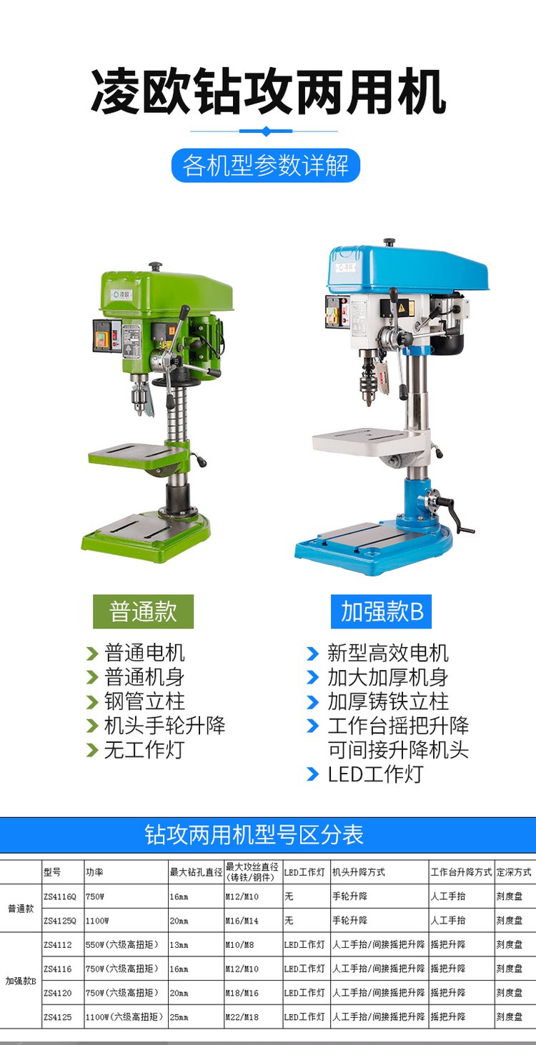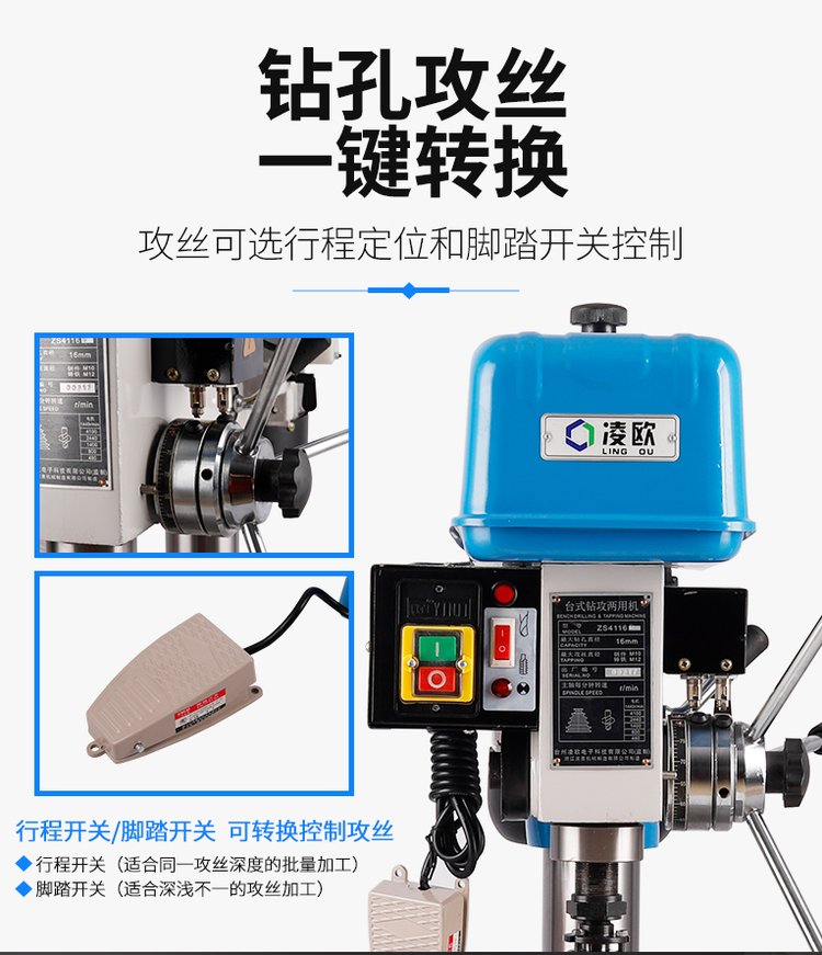 凌欧钻攻两用机工业台钻 钻孔攻丝一体钻床zs4116b zs4120 25 12c