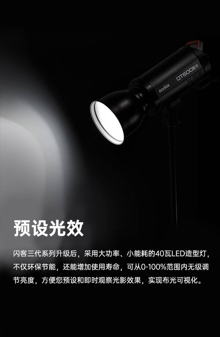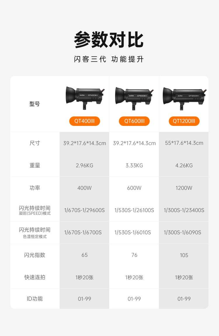 godox神牛闪客QT400W/600W/1200W III三代高速闪光灯影棚室外影楼摄影灯广告静物拍摄拍照高速同步回电快