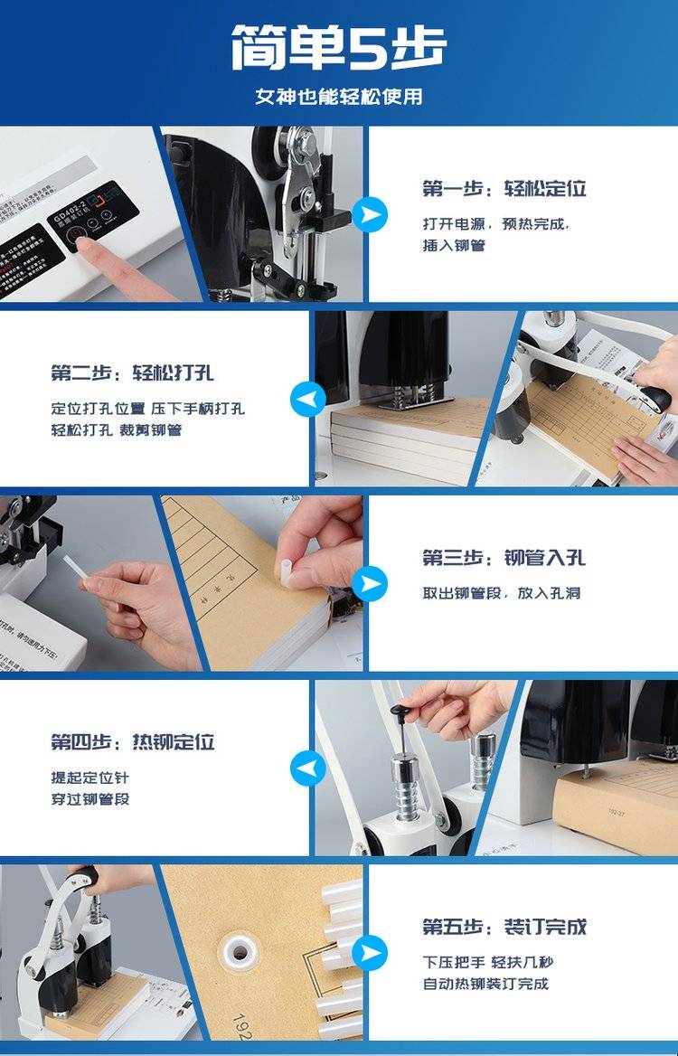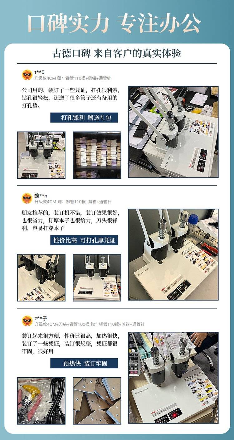 古德4厘米凭证装订机档案会计手动打孔办公热熔铆管财务电动加热胶装机免装线全自动热熔胶票据装财务装订机