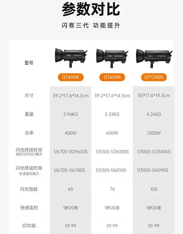 godox神牛闪客QT400W/600W/1200W III三代高速闪光灯影棚室外影楼摄影灯广告静物拍摄拍照高速同步回电快