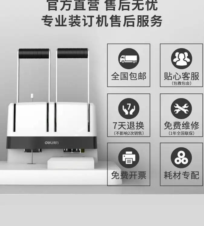 得力凭证装订机手动打孔财务会计胶装机账本小型办公资料档案文件热熔铆管胶管女生省力家用打孔机自动装订机